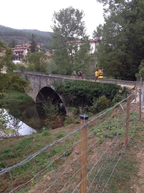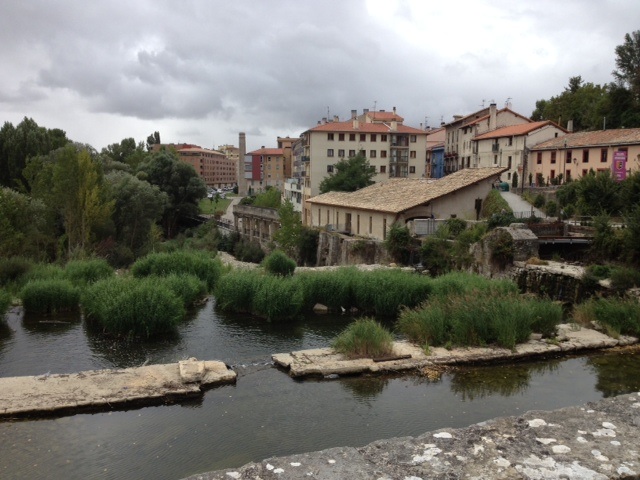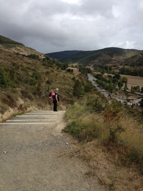 Rambling, sorry, anyway after we left Zubiri, we walked thru Larrasoana, this wasn’t bad at all, some hills, but we are getting stronger. Also we sent one bag ahead, you pay 7euros and they will drive our bag to wherever you walk to next. We each still had a bag, Al had his backpack and we jammed my backpack full of heavy stuff, but I still had about 10 pounds in Al’s gym bag. I looked ridiculous. We walked to Pamplona today which ended up being 20km. not too shabby!