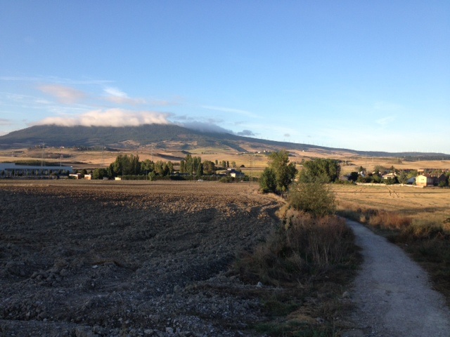 We left pamplona early today , dawn here comes later, around seven, so it pre-dawn. leaving the city we walked thru the campus of the university of Navarra. We meandered thru the city and when we reached the outskirts we could see in the distance, mountains with windmills on the ridge line. I knew we would be walking past those today.