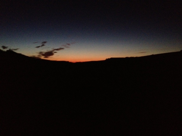 Today we started very early, up by 5, out by 6. Pitch black out, no monsters, but I was scared anyway. You simply can’t see beyond your little cone of light. That was terrifying, we were afraid of of dogs and of getting lost.