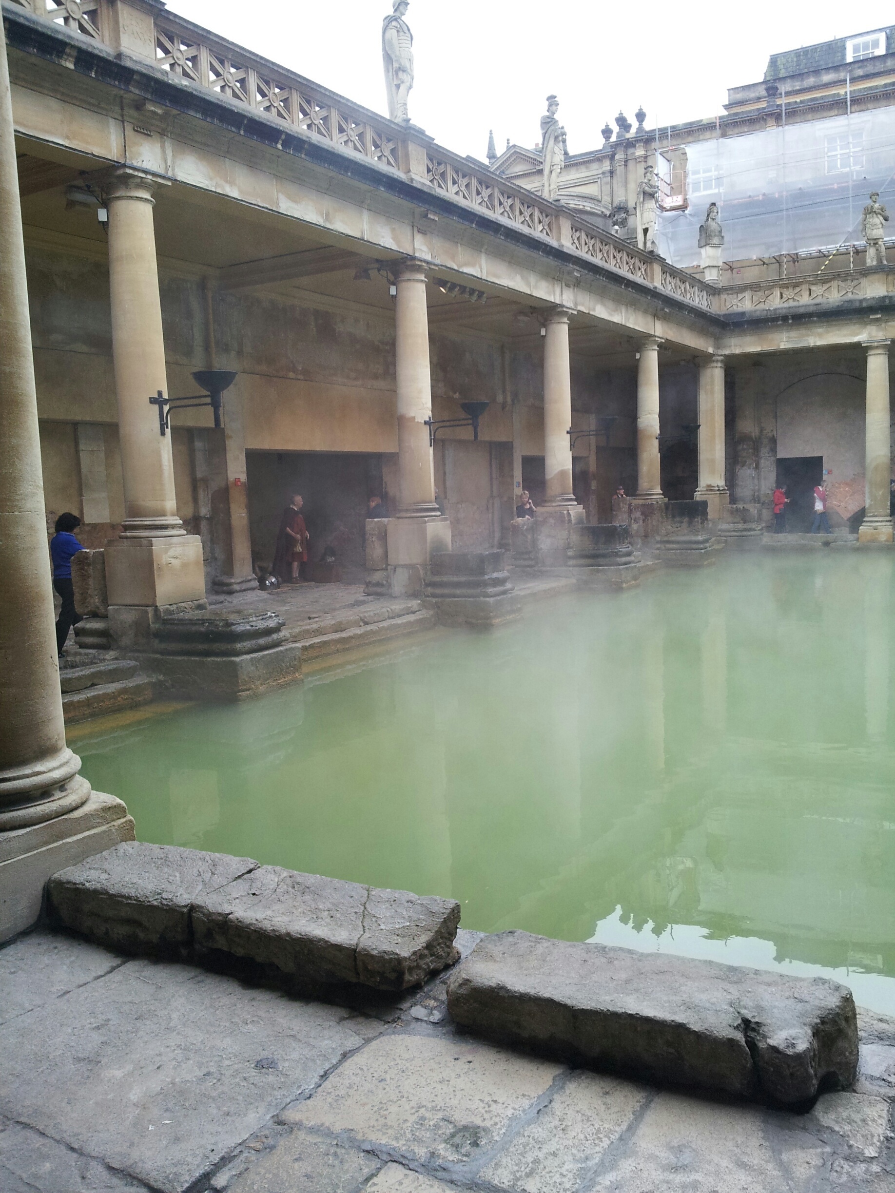 The baths, water is green because the baths were I closed in roman times, now they are open to the sun