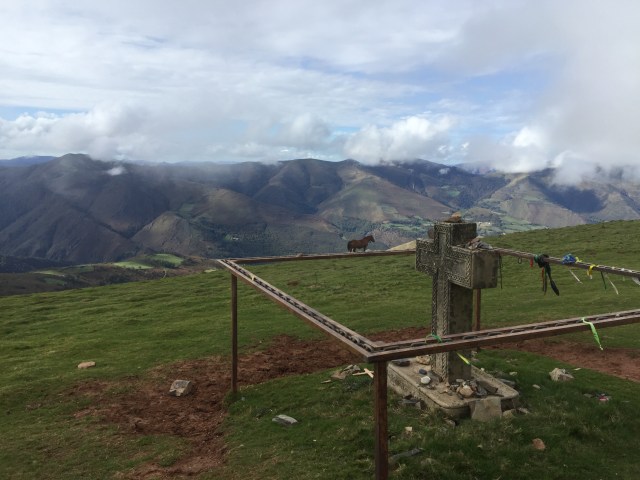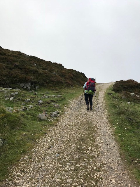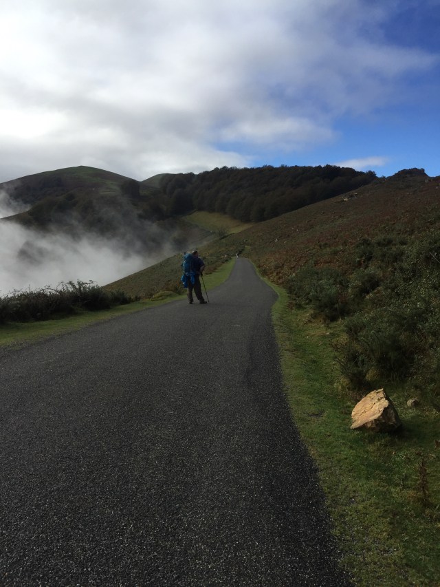 Then there are two choices to make when you leave town, the easier way, the Valcarlos Route, which is used a lot in bad weather or the much more difficult route, the Route de Napoleon, which travels over the Pass of Roncesvalles. This is what we did last time and it’s supposed to be a beautiful day but It is arduous! It winds up for 20km and then steeply down for 5km.