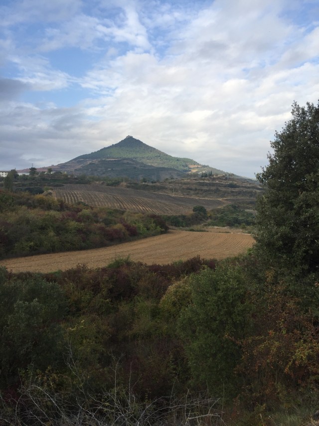 This is what you see when you make that turn. Vineyards and a monastery upon the hill. We made our way down and had to cross a road. It always seems weird to me, we are walking these dusty trails or on cobbled streets and when we turn a corner, cars, trucks and buses. We go from one century to another.