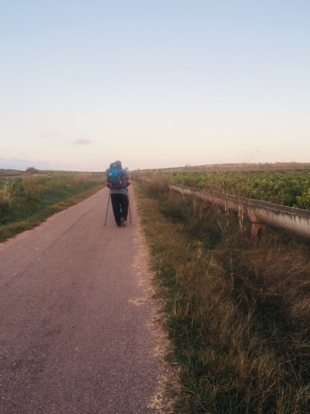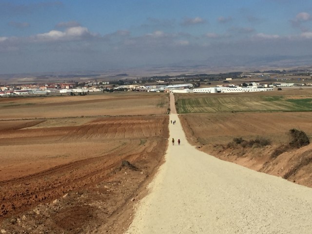 with canals running along side. Those canal pipes run for miles. We walked with a group of Spanish people who were walking as a family. I see them in the cocina, the kitchen early. Everyday they are the 1st ones up and out . I think they must take a break and have breakfast on the trail. We don’t normally run into them again till later.