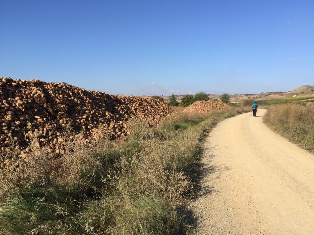 So we are walking and I thought they were plowing out all the rocks from the fields. I am thinking good idea. They had collected all these huge piles of rocks beside the path.