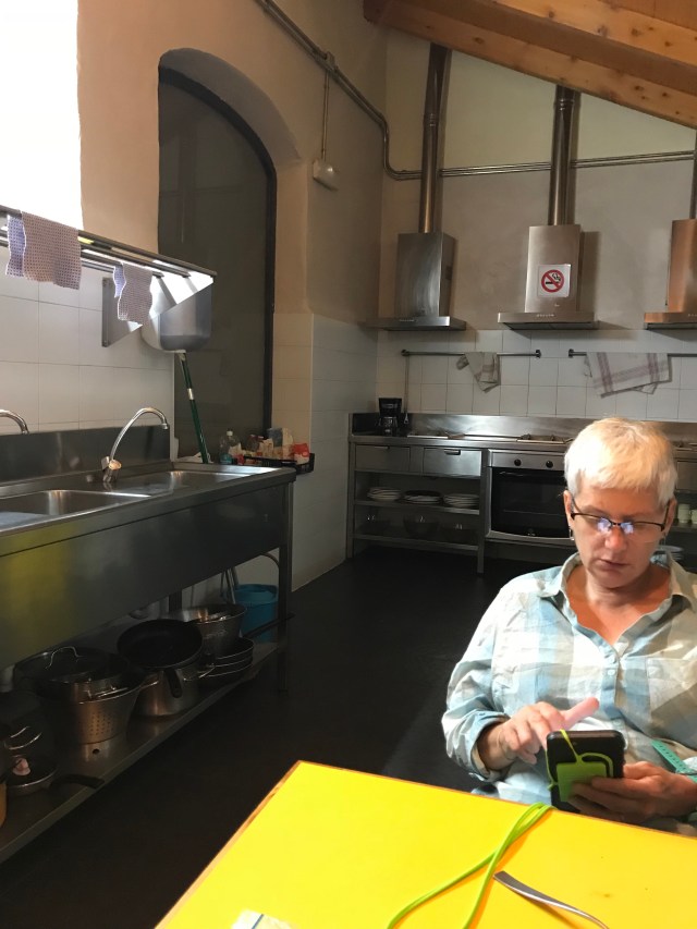 I usually write this blog at night after we get in, and I am usually a day behind, today I am talking about the real yesterday. Sorry if I have confused anyone. There is free WiFi in most of the albergues, but when every person in the place is on it,it takes forever to load pictures. So I sometimes get up before everyone, like today and start writing. 👍Al came up one morning and took a snap of me.