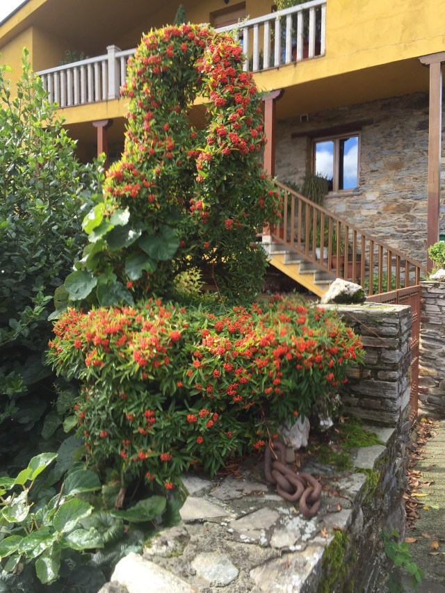 Well we may have bit off more then we should have. We actually climbed 3600feet! We did book a place ahead, so with having a reservation you get there when you can and know you at least have a bed. We asked at an earlier albergue what’s open ahead, because there’s less places to stay, I didn’t want to climb up there and find out then, they are closed. It turned out that it was, so she called the next place, really can’t say town, it’s just 3 houses, one of them an albergue. It meant another 2.3km climb, which took us over an hour but that’s ok.