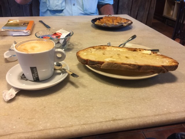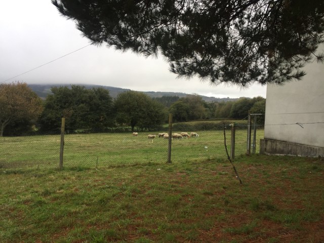 Most mornings we get up at 6:30, get dressed in the semi dark and out the door by 8. Sometimes someone will turn the lights on around 7. With less people they aren’t pushing us out the door like they were before. I have seen the people shaking pilgrims up, then literally stand by the bed and say, you have 15 minutes to leave. Harsh. Last several places, no one is even there at night, in the morning we shut off the lights and let ourselves out. But anyway, where I’m going with this is we leave on an empty stomach, and walk. At a coffee stop there are sheep.