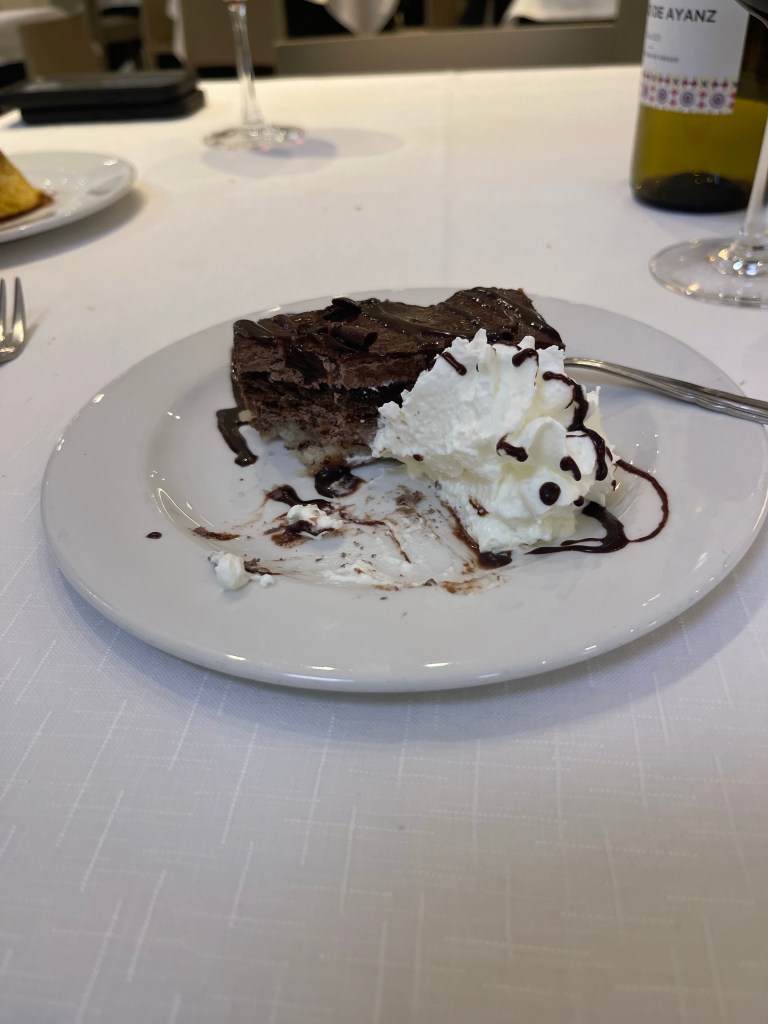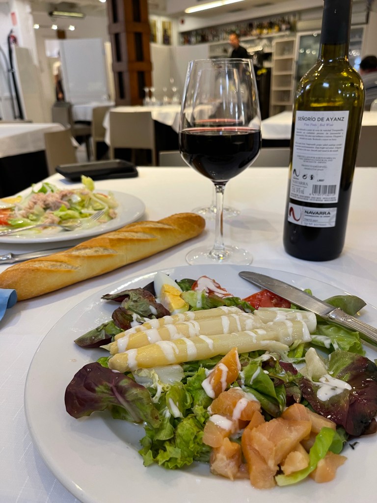We had to walk down into San Sebastián which has beach after gorgeous beach. We had to some time before we could check into our Hostel to we celebrated our Anniversary and had an amazing lunch. We had a standard Meal of the day, which is a salad course, main dish then some kind of dessert, it also includes a bottle of wine. 😀