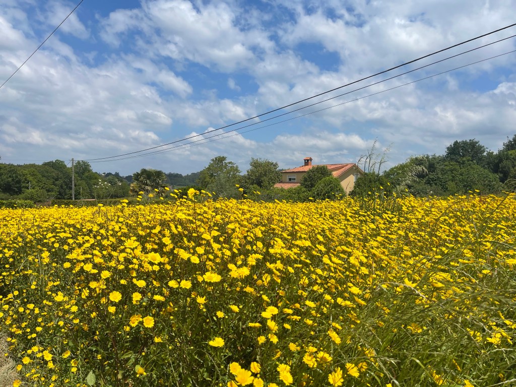 We have been seeing the same people now everyday since starting the English Way. It’s nice, even with the language barrier it usually works. The Greek woman speaks perfect English because she’s actually from Pennsylvania. The elderly Spanish woman, we had coffee with and chatted on the trail a few times now. The two young Danish girls whom are always singing or laughing. Then the group of four, no idea where they were from but we chatted several times meeting at coffee or beer breaks.