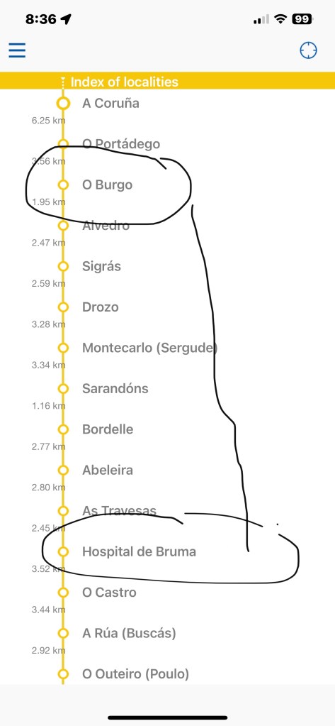 We walked 15.5 easy miles today. Tomorrow we walk into Santiago, should also be less miles. We hope to arrive around lunchtime. Below is Al’s relive video.