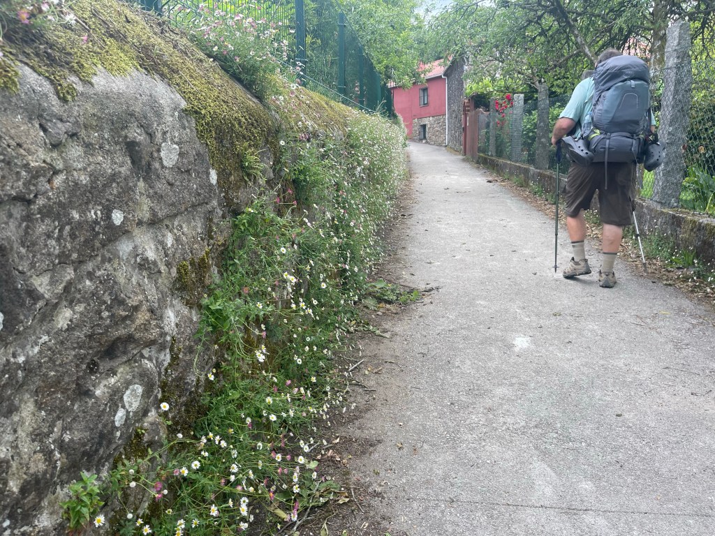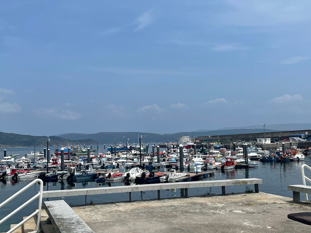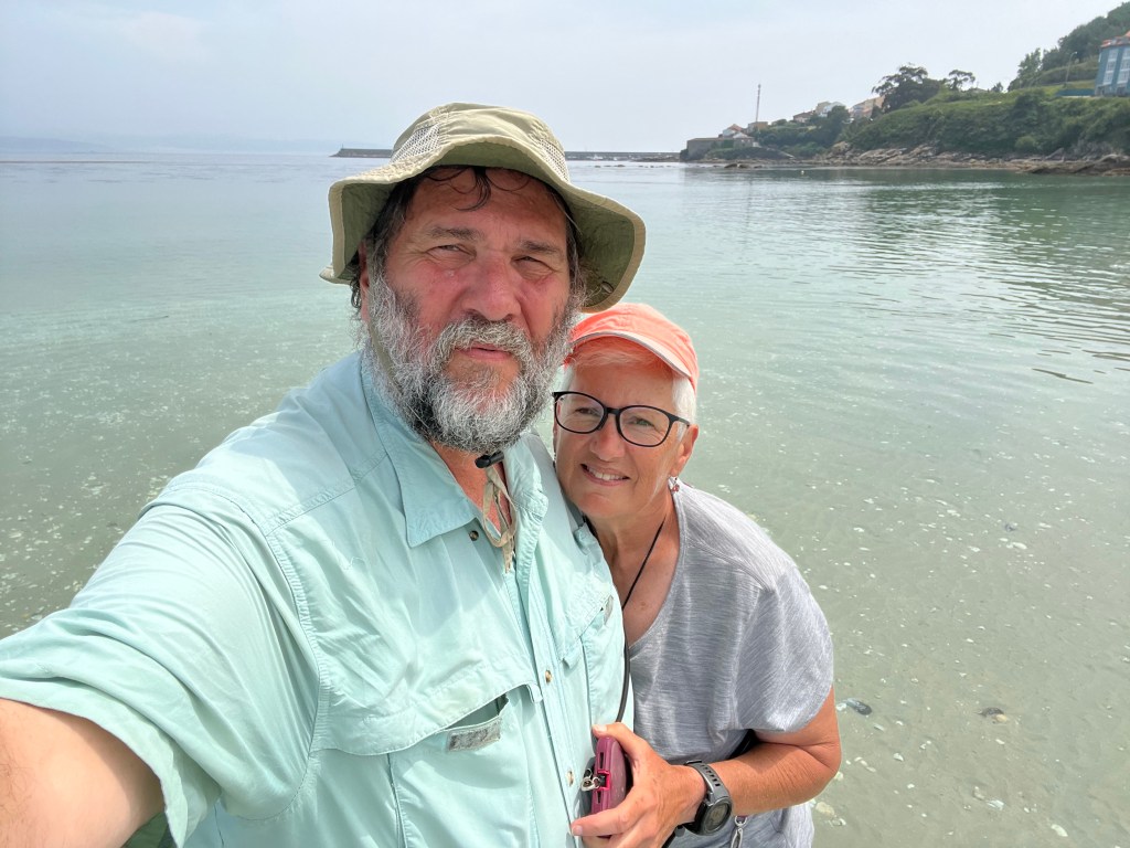 Let me back up, Al wanted to wait after getting to Fisterra to actually walk to the end, about 3 kilometers to the 0.0 kilometer marker. He wanted to watch the sun drop into the ocean. He said. “ We will get a bottle of wine, some corn nuts”. He had me at the wine but I will admit to a little corn nut addiction. I’ve already checked Amazon to see if I can still get these corn nuts in the states. Al assures me I can, but just to be sure I had to check. Not actually the same kind but I will have to adjust. We shared some corn nuts a few nights ago at O Bordón when we hung out with the other hikers. Sorry, rambling on about corn nuts.